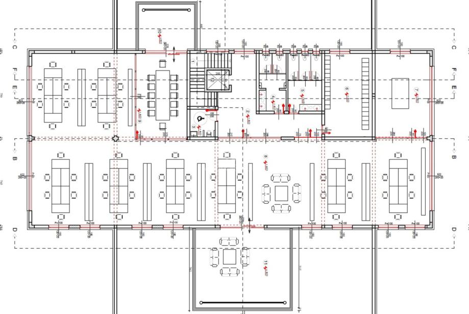Velika open space prostorija + odvojena konferencijska dvorana, dodatne uredske prostorije, predprostor, sanitarni čvor ( odvojeni muški i ženski WC ).