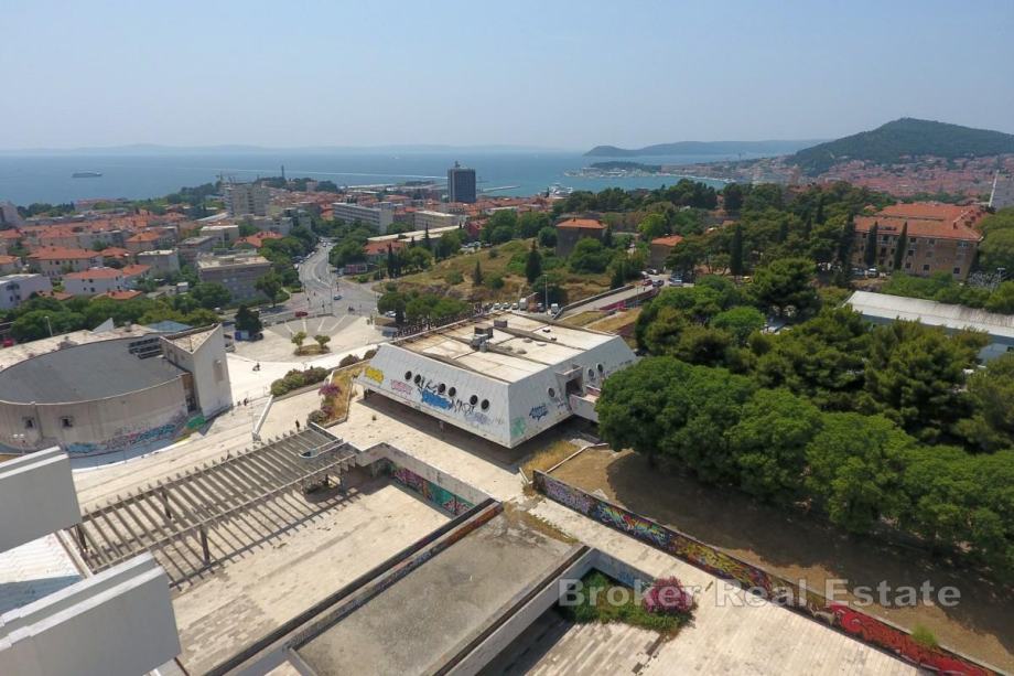 Orijentirana na sve četiri strane svijeta, nekretnina se prostire na 985 m2, te ima prostranu pripadnu terasu od 1449 m2.