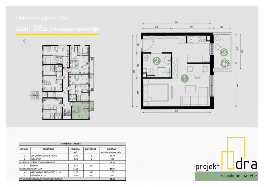 1-SOBAN STAN POVRŠINE 29,93 m2 SA VANJSKIM PARKIRNIM MJESTOM I SPREMIŠTEM
