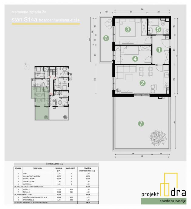 3-SOBAN STAN NKP 56,29 m2 SA GARAŽNIM PARKIRNIM MJESTOM I SPREMIŠTEM