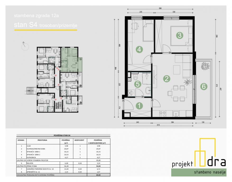 3-SOBAN STAN NKP 53,04 m2 SA GARAŽNIM PARKIRNIM MJESTOM I SPREMIŠTEM