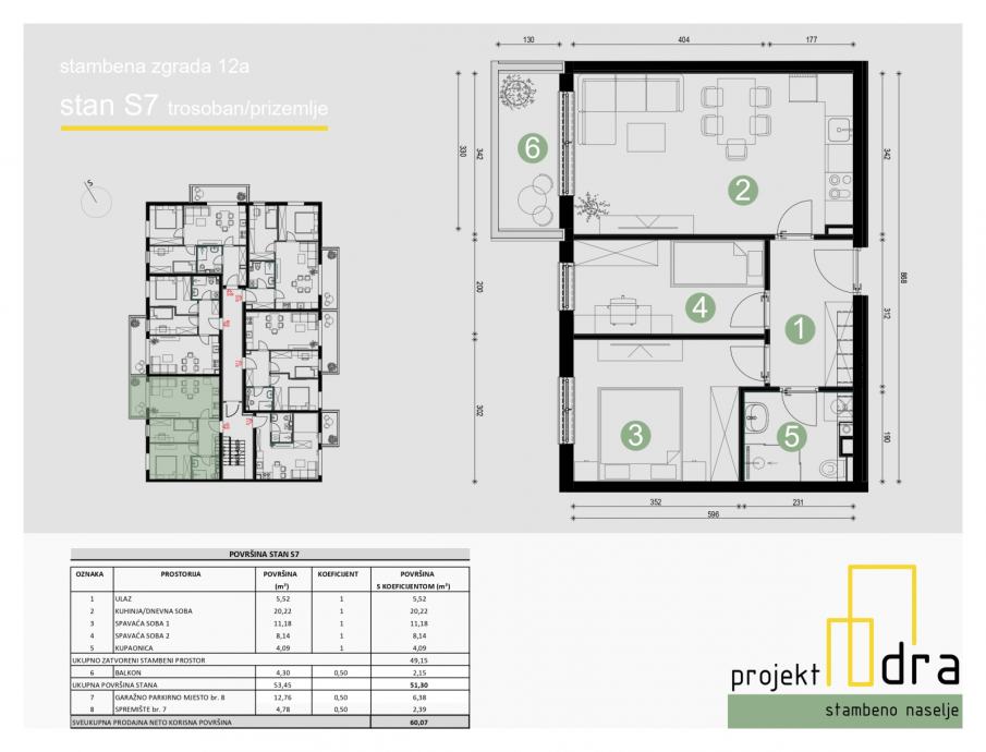 3-SOBAN STAN NKP 51,30 m2 SA GARAŽNIM PARKIRNIM MJESTOM I SPREMIŠTEM
