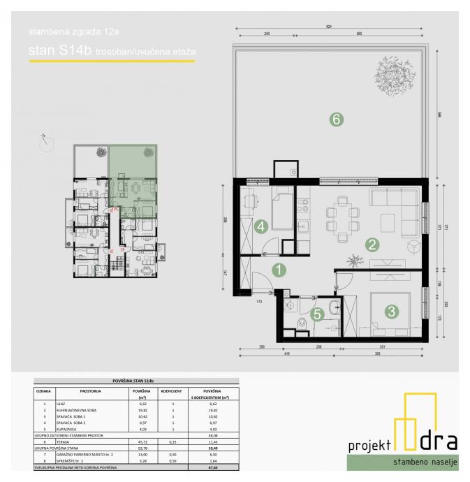 3-SOBAN STAN NKP 59,49 m2 SA GARAŽNIM PARKIRNIM MJESTOM I SPREMIŠTEM
