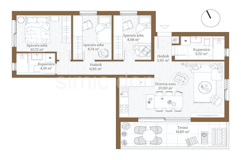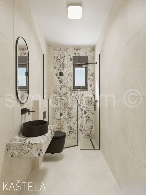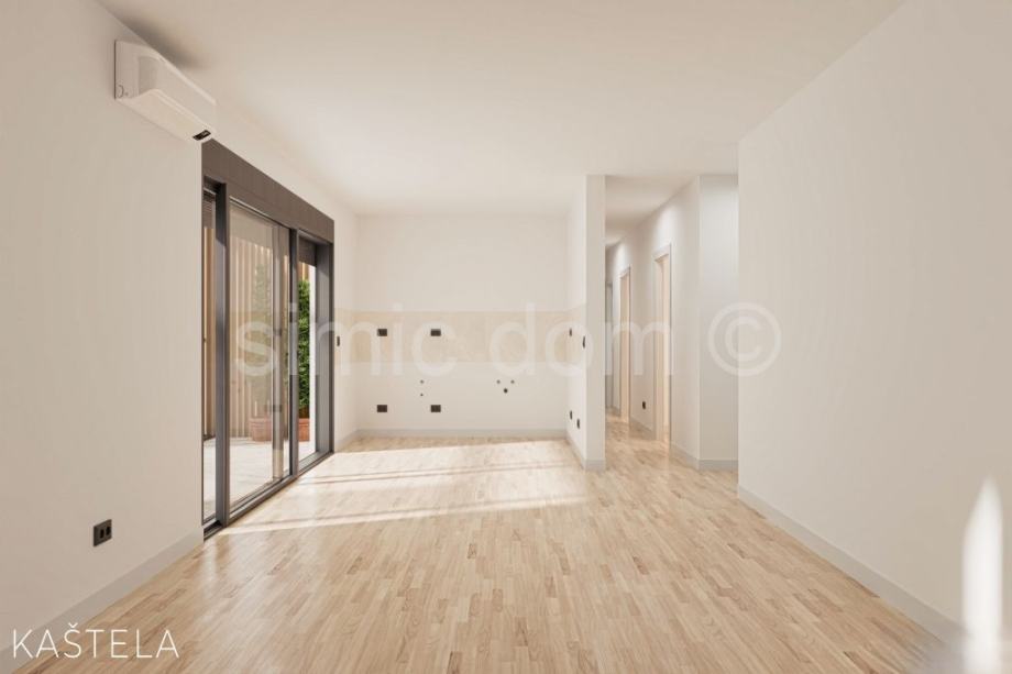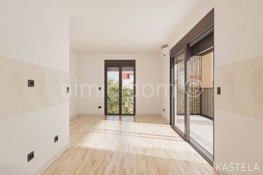 Na prodaju su stanovi na izrazito atraktivnoj lokaciji blizu svih sadržaja u Kaštel Kambelovcu. Zgrada je udaljena niti dvije minute hoda do plaže, u mirnoj ulici i u blizini je svih ostalih potrebnih sadržaja poput dućana, kafića, škola i vrtića. Zgradu gradi renomirana firma s velikim iskustvom u novogradnjama, stoga su kupci oslobođeni poreza na promet nekretninama. Stan S2 nalazi se na prvom katu ima neto korisnu površinu od 81,53 m2, odnosno ukupnu podnu površinu od 88 m2. Sastoji se od hodnika, dvije kupaonice, tri spavaće sobe te kuhinje s dnevnim dijelom iz kojeg se izlazi na terasu. U sklopu zgrade nalaze se još i spreme te vanjska parkirna mjesta koja se nadoplaćuju. Svaki stan opremljen je s pažnjom prema detaljima i visokim standardima gradnje. U pogledu opreme, odabrani su renomirani proizvođači koji jamče dugotrajnost, funkcionalnost i estetiku: Daikin klima uređaji, Hansgrohe i Geberit sanitarije, podno grijanje u kupaonicama, a u dogovoru s investitorom može se u ovoj fazi provesti i kroz cijeli stan, talijanska premium keramika, parket od hrasta I kategorije, aluminijska vanjska stolarija i sl. Očekivano useljenje je proljeće 2027. godine.
