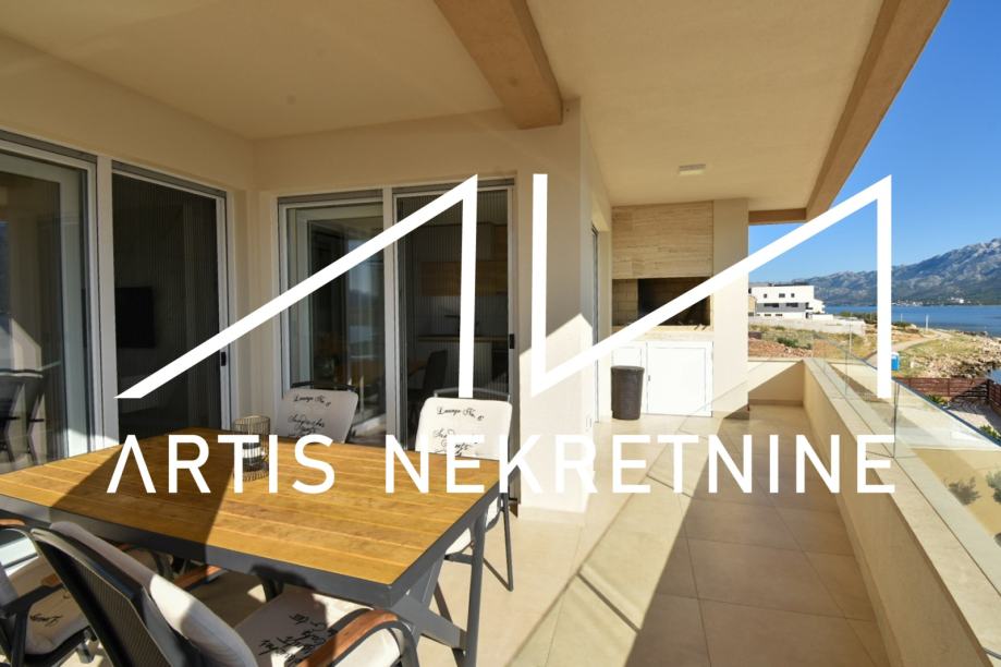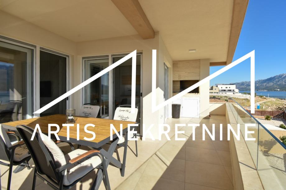 Pogled koji ostavlja bez daha – s terase, dnevnog boravka i glavne spavaće sobe pruža se panoramski pogled na Jadransko more, dok u pozadini dominira impozantni planinski lanac Velebita. Pred stanom se nalazi mirna šljunčana plaža i netaknuta priroda, idealna za opuštanje i bijeg od svakodnevice.