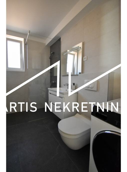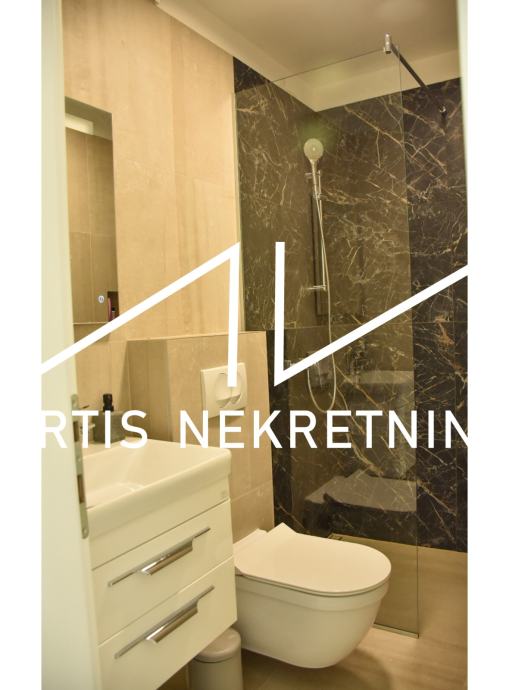 Apartman se prodaje potpuno namješten, s kvalitetnim namještajem izrađenim po mjeri. Posebnu estetsku vrijednost daju zidne površine obrađene tehnikom ručne obrade u dnevnom boravku i spavaćoj sobi, koje prostoru daju jedinstven karakter.