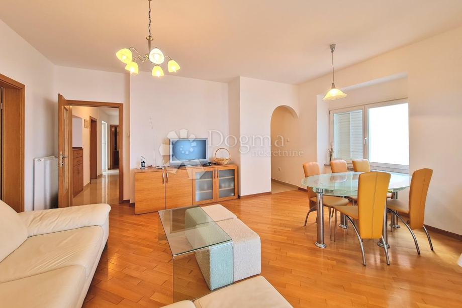 Prostor kuhinje i dnevnog boravka je vrlo prostran, sunčan i prepun svjetla. Raskošna terasa na kojoj je moguće staviti razne ležaljke i prostor za objedovanje.