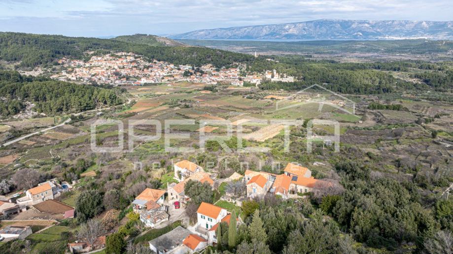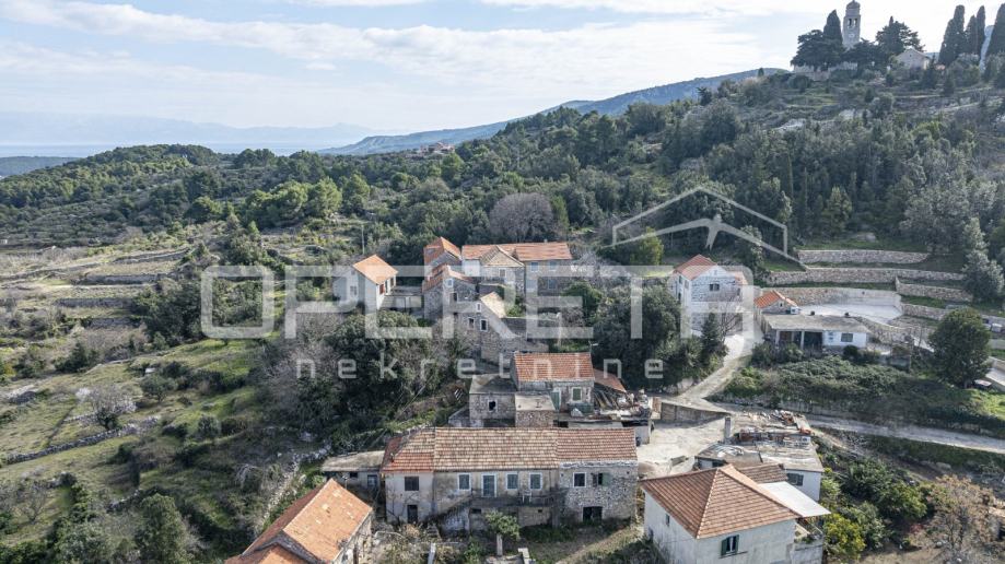 U mirnom mjestu Vrisnik, smještenom na sjevernom dijelu otoka Hvara, nalaze se četiri spojene kuće, svaka s površinom od 30 m², kako u prizemlju, tako i na katu. Ovaj prostor nudi mogućnost prilagodbe prema potrebama budućih vlasnika, pružajući potencijal za stvaranje jedinstvene i prostrane cjelina. Uz kuće se prostire lijepa okućnica, koja, iako zahtijeva malo truda, nudi brojne mogućnosti za oblikovanje ugodnog vanjskog prostora. S prozora se pruža nezaboravan pogled na netaknutu prirodu koja okružuje kuću, dok su svi komunalni priključci poput struje, vode i septičke jame već osigurani.