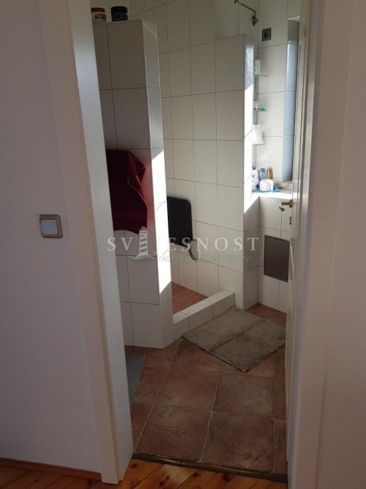 Na jednom takvom području, naselju, svoje utočište pronašla je i sa zanimanjem očekuje novog vlasnika, naša vrlo zanimljiva dvojna kuća površine 141 m2 raspoređenih na prizemlje, kat i visoko potkrovlje.