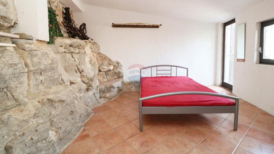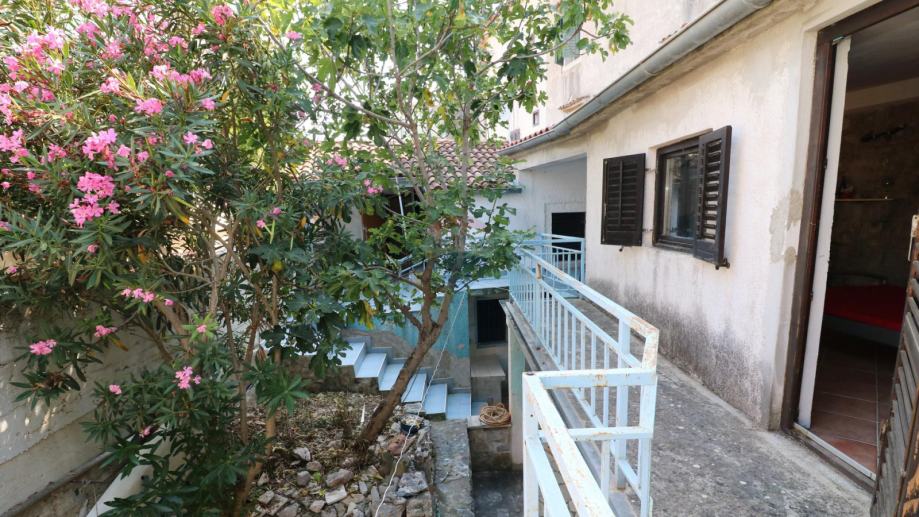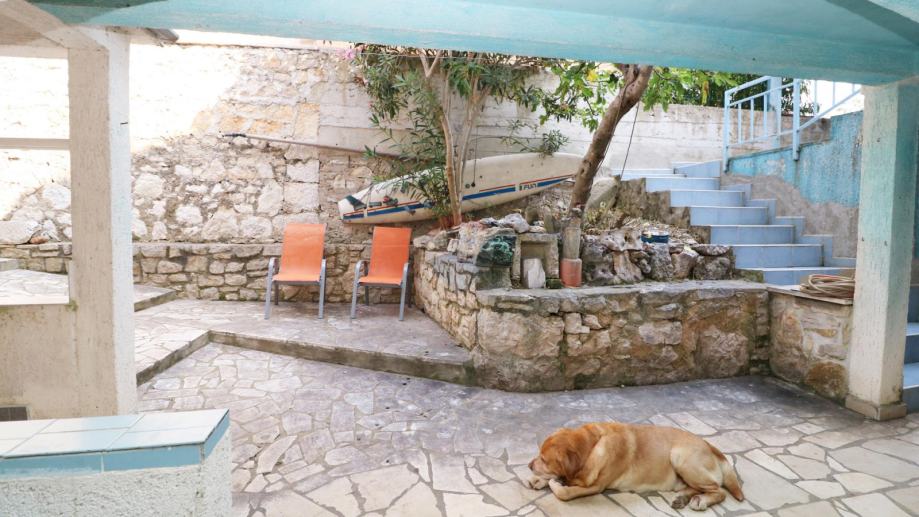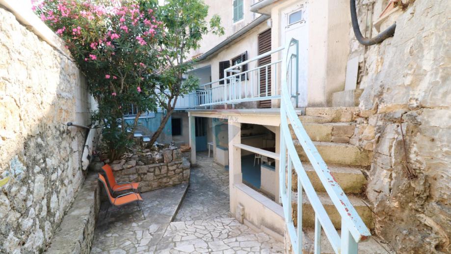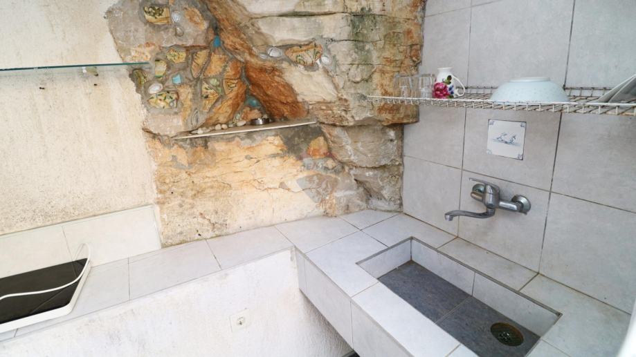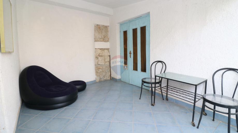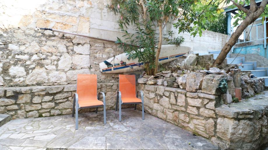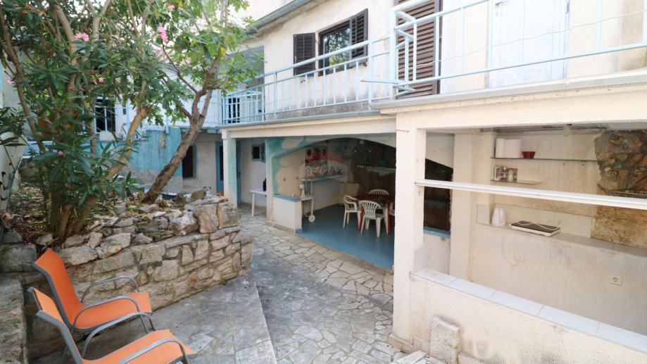 Na prodaju je specifična nekretnina smještena u centru malog, turističkog mjesta. Površine je 83 m2. U prizemlju se nalaze dva prostora, jedan veći koji trenutno služi kao skladište i kuhinja sa kupatilom te otvoreni, natkriveni prostor gdje je stol za druženje i manja, vanjska kuhinjica. Kuća ima dvorište površine 80 m2, potpuno skriveno od pogleda. U natkrivenom djelu dvorišta ističe se velika stijena koja pruža hlad i mir tijekom vrućih ljetnih dana.