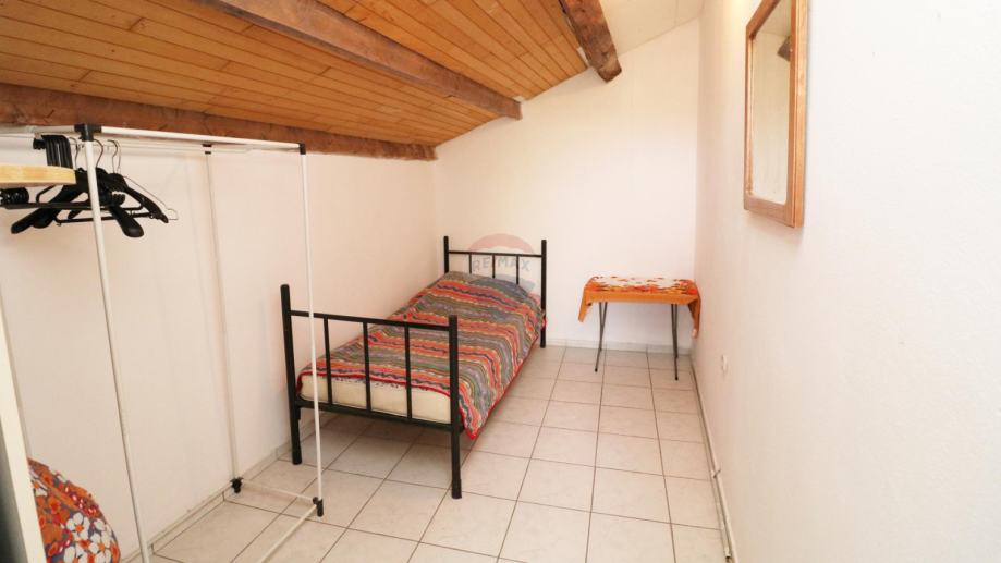 Na gornjem katu smještene su tri spavaće sobe, kupatilo, toalet i natkrivene terase. Postoji mogućnost renovacije kuće u tri zasebna apartmana, što ovu nekretninu čini atraktivnom za potencijalne investitore.