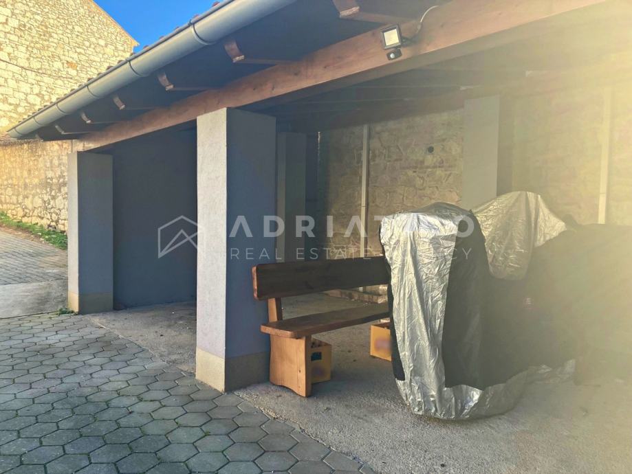 U dvorištu se nalaze cisterna i natkriveni parking za dva vozila te mjesto za još jedno vozilo.