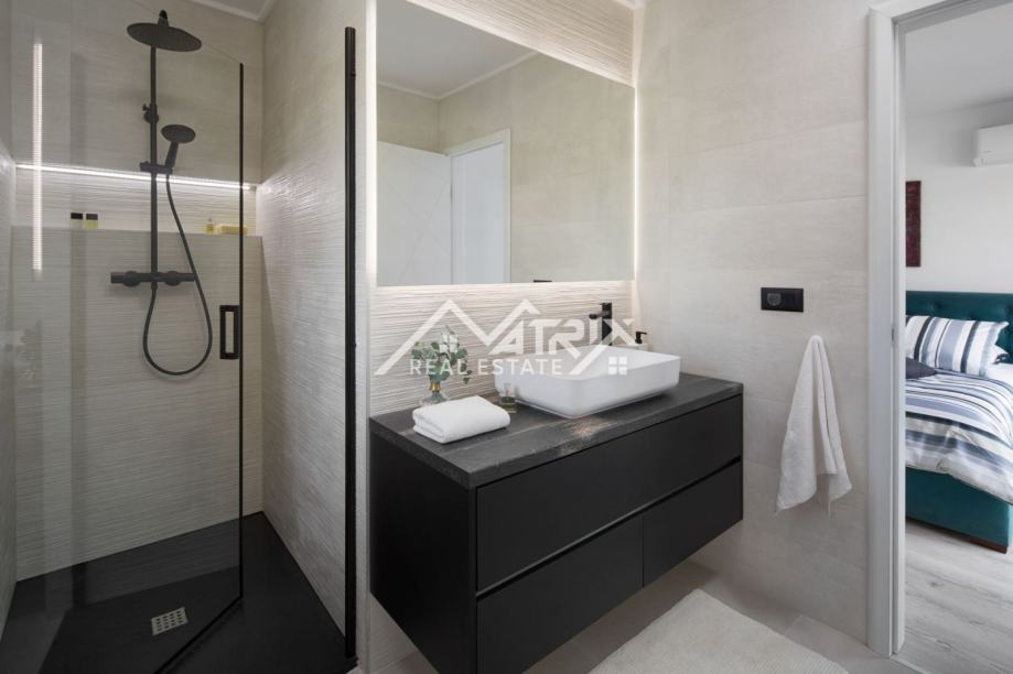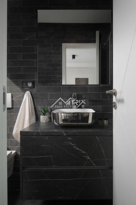 Kuća se prodaje potpuno namještena i opremljena kako je vidljivo na slikama. Kompletan namještaj je izrađen po mjeri te se pazilo na svaki detalj kako bi kuća bila na najvišem nivou. U cijeloj je kući postavljeno podno grijanje putem toplinske pumpe, a također svaka soba ima postavljen klima uređaj. Topla voda u kući osigurana je putem solara.