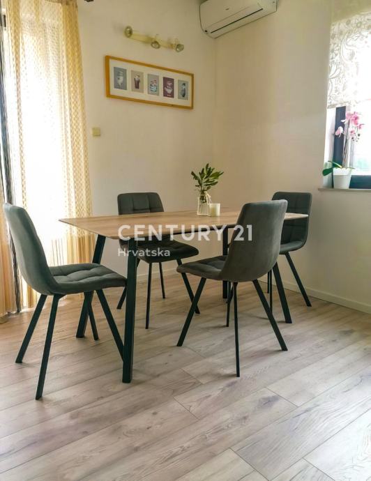 Kuća se prodaje potpuno namještena i opremljena. U svakome stanu je klima uređaj, dodatno u najvećem stanu u prizemlju nalazi se i peć na kruta goriva kojom se grije cijeli stan. Ovaj stan služi za stanovanje vlasnika dok se 2 apartmana iznajmljuju gostima kroz sezonu.