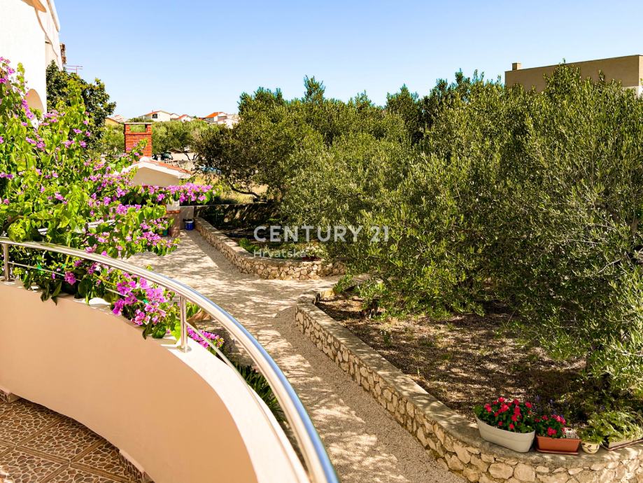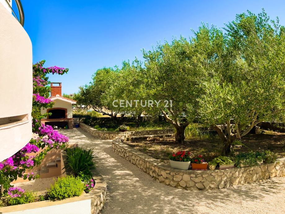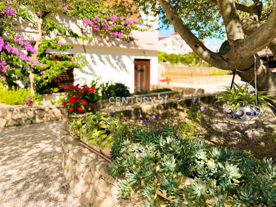 Dvorište je lijepo uređeno, sa zasađenim maslinama, raznim ukrasnim biljem i cvijećem, u stražnjem dijelu je vrt, u prednjem dijelu prostor za parking više vozila te roštilj.