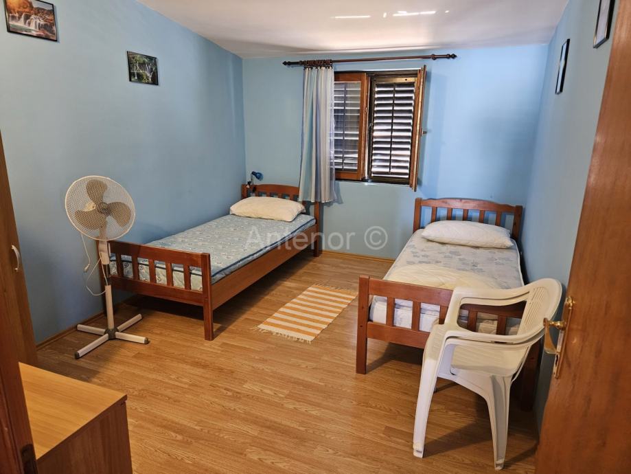 VRSI - dvosoban apartman na katu sa pripadajućim dvorištem i parkirnim mjestom. Apartman je udaljen 400 m od mora i centra mjesta Mulo. U neposrednoj blizini apartmana nalaze se svi potrebni sadržaji (trgovine, restorani, tržnica, autobusna stanica..). Od plaže je udaljen svega nekoliko minuta hodanja, te prekrasne borove šume. Objekt je smješten u slijepoj ulici, u mirnom dijelu naselja. Od povijesnog grada Nina udaljen je 4 km, a od Zadra 20 km.