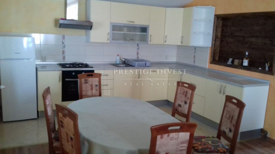 Sastoji se od podruma, prizemlja i kata. U prizemlju se nalazi stan sa jednom spavaćom sobom, hodnikom, kuhinjom sa blagovaonicom, prostranim dnevnim boravkom i velikom kupaonicom. Iz dnevnog boravka izlazi se na natkrivenu terasu. Vanjsko stepenište vodi na kat kuće gdje se nalazi stan sa dvije spavaće sobe, kupatilo, kupatilo sa wc-om, kuhinja sa blagovaonicom i dnevni boravak. Na katu kuće nalaze se dvije prostrane terase sa kojih se pruža prekrasan pogled na otvoreno more i na otoke. U sklopu kuće nalazi se konoba sa kaminom. Okućnica je površine 519 m2 a zajedno sa kućom prodaje se i poljoprivredno zemljište površine 376 m2 koje se nalazi sjeverno od kuće i ima pristupni put izravno iz dvorišta. Kuća ima centralno grijanje, dimnjak i klima uređaje. Voda se koristi iz gradskog vodovoda ali ima i vlastitu cisternu. Odvod septička jama, uskoro mogućnost spajanja na kanalizaciju.