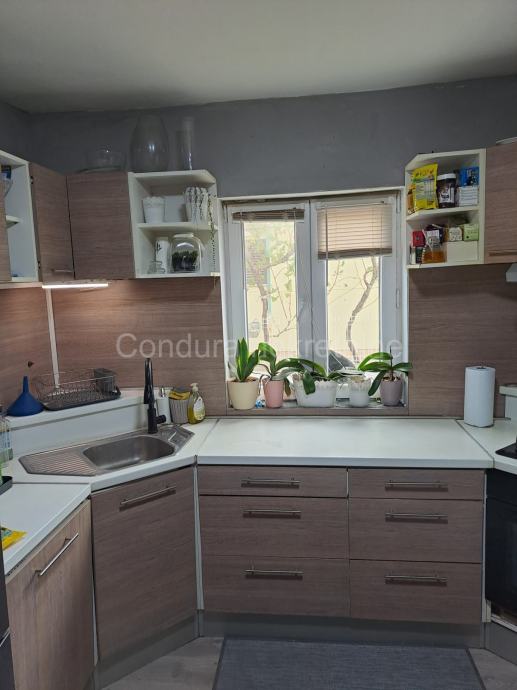Prodaje se dvojna kuća ukupne neto površine 225 m2 koja je sagrađena na zemljištu veličine 168 m2. Smještena u mirnijem dijelu naselja pogodna je i za stalni boravak kao i za odmor odnosno najam.