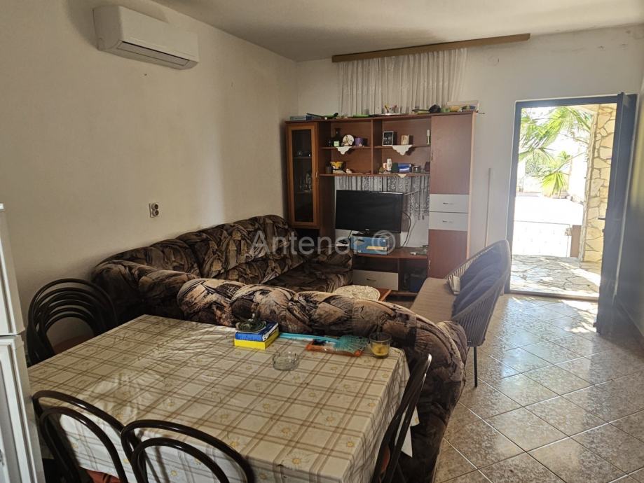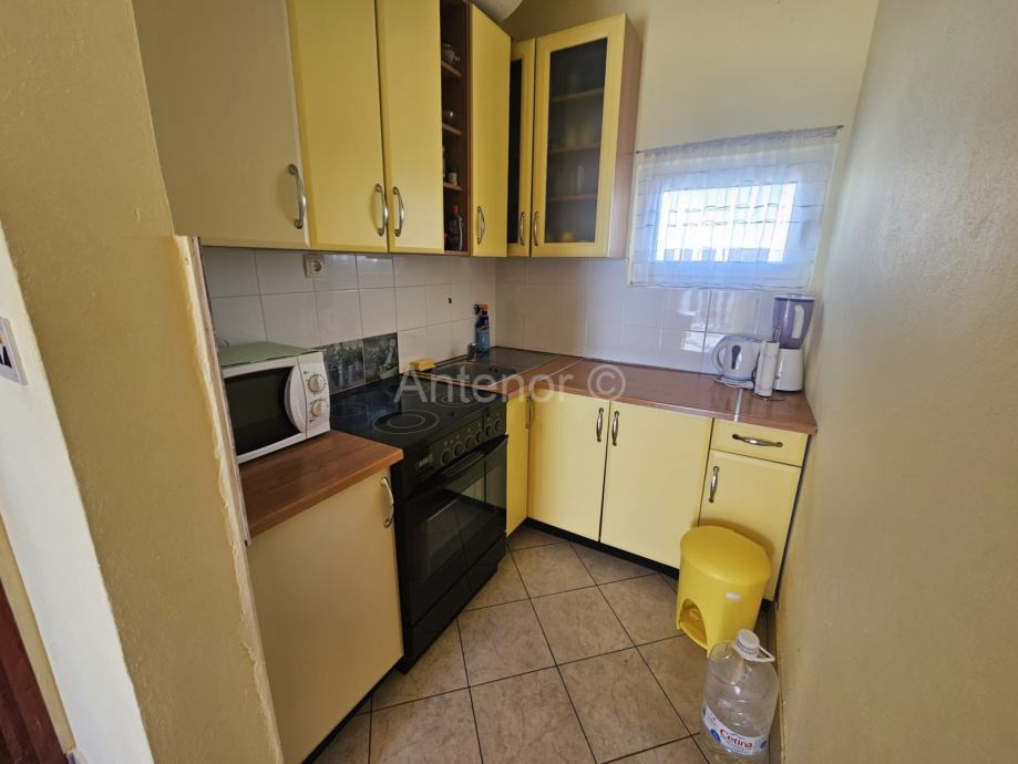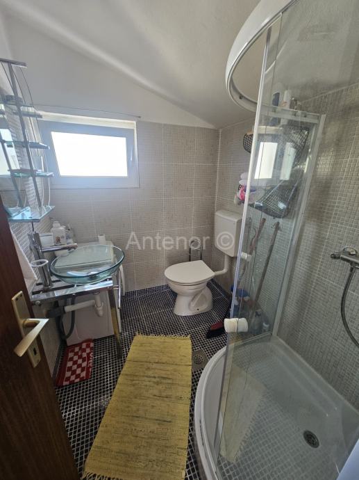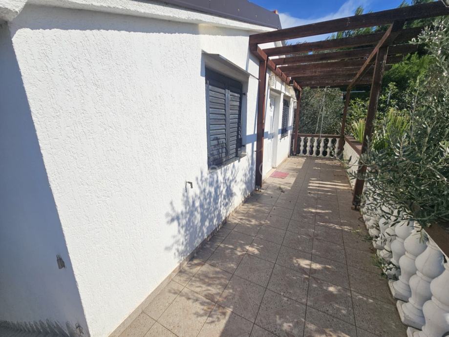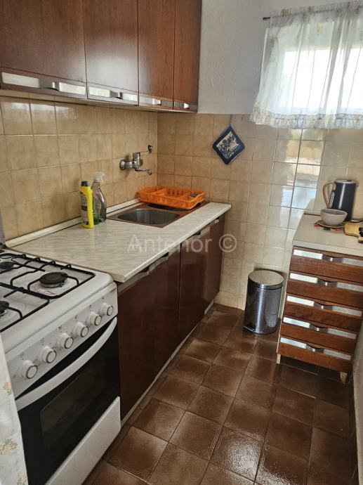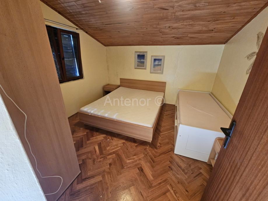 Vanjskim stubištem dolazimo na kat koji se sastoji od kuhinje, blagovaonice s dnevnim boravkom, dvije sobe i kupaonice,te nenatkrivenom terasom.
