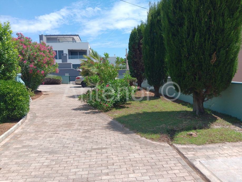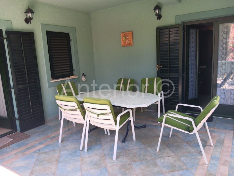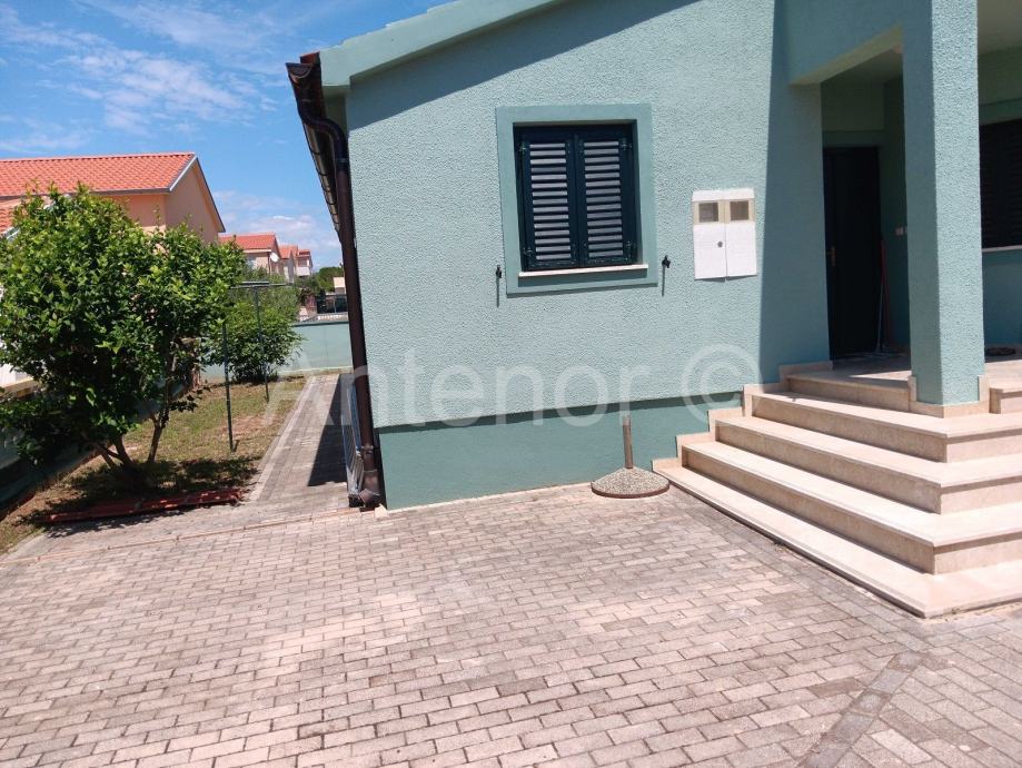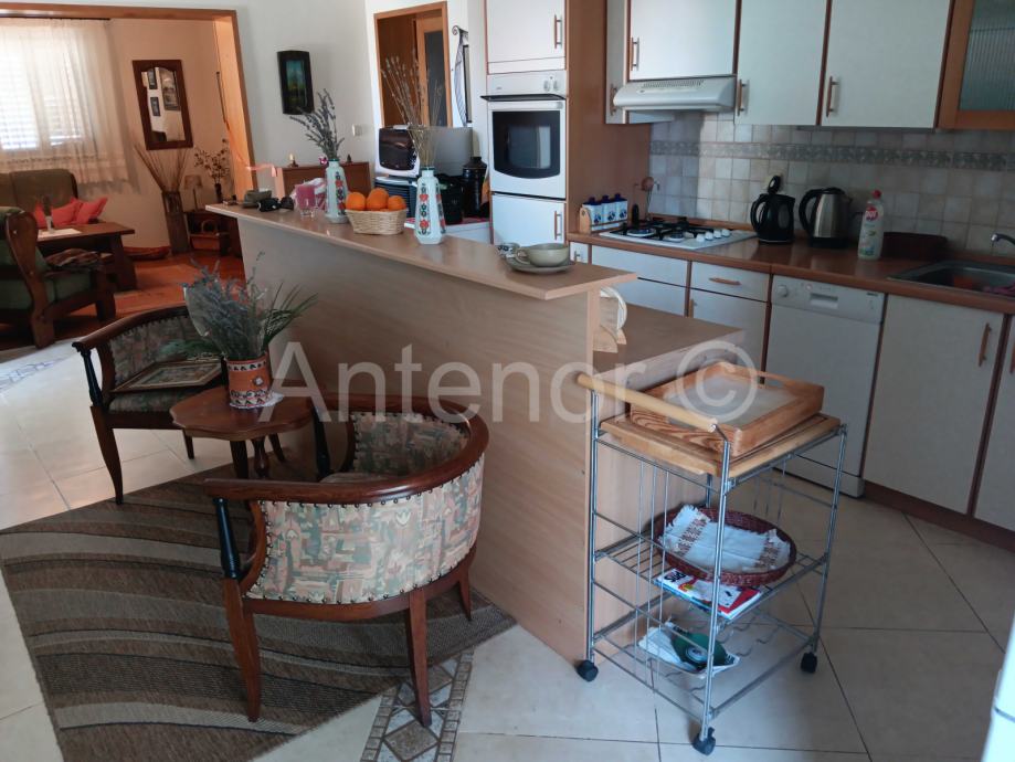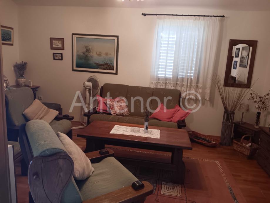 Kuća se sastoji od prizemlja i kata. U prizemlju se nalazi ulazni prostor, hodnik, kuhinja sa blagavaonicom, dnevna soba, wc, kupaonica, dvije spavaće sobe i prekrasna terasa od 35,10 m2. Također u prizemlju se nalazi jedan studio apartman.