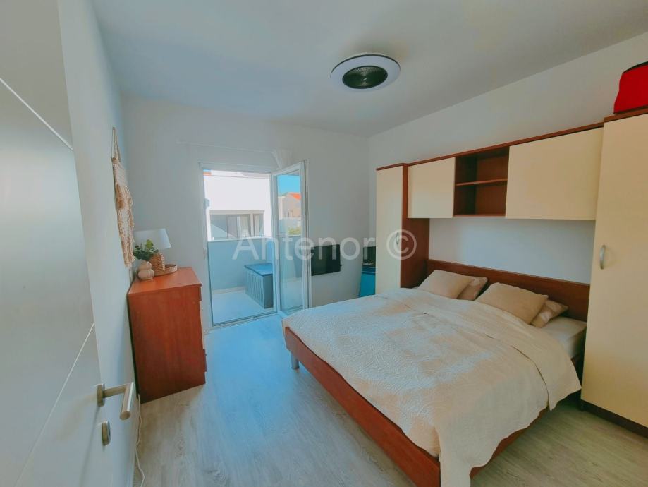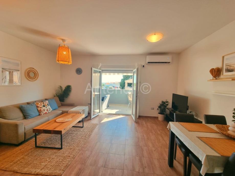 VRSI (MULO) - Prodaje se dvosoban apartman. Apartman se nalazi na prvom katu, a sastoji se od ulaza, dvije spavaće sobe, kupaonice, kuhinje s blagavaonom i dnevnog boravka te dva nenatkrivena balkona ukupne površine 59 m2. Stanu pripada jedno parkirno mjesto. Apartman se nalazi u mirnom predjelu, udaljen 300 m od mora i plaže te 150 m od centra mjesta, u blizini svih potrebnih sadržaja. Vlasništvo je uredno 1/1.