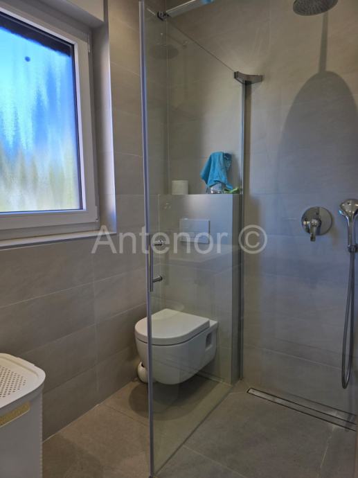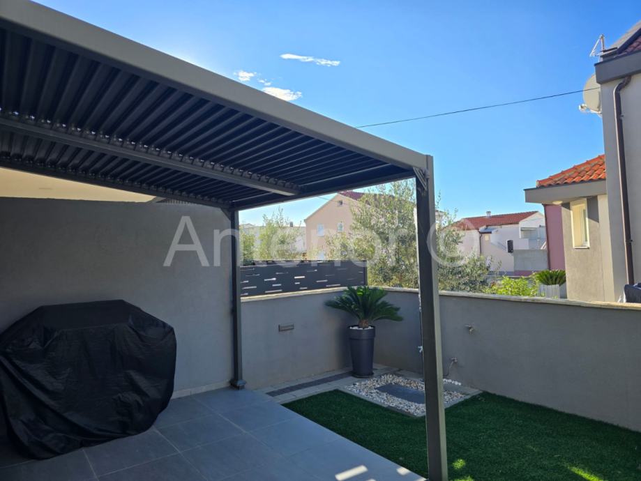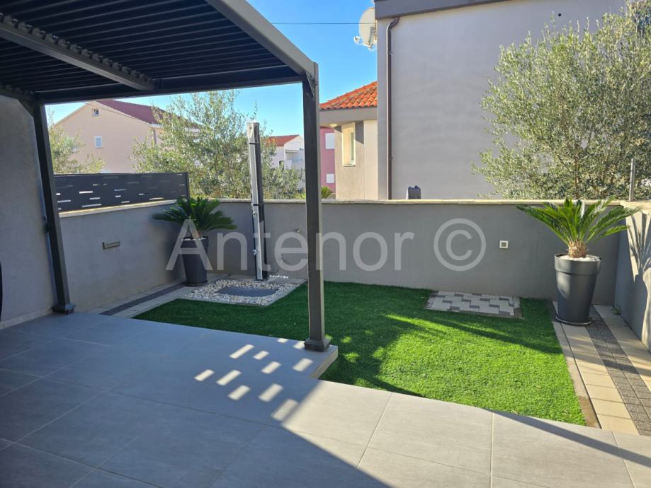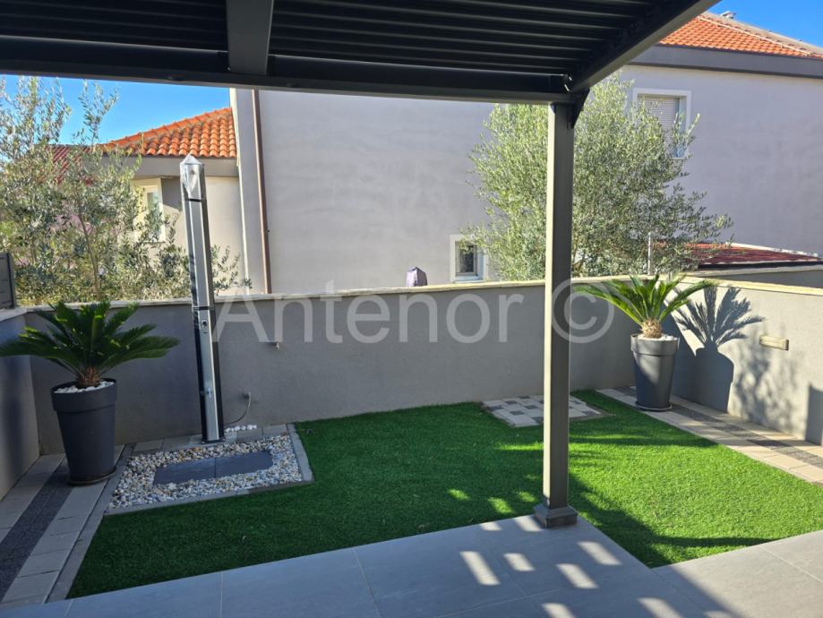 Apartmanu pripada nenatkrivena terasa ukupne veličine cca. 14m2, vrt površine cca. 19m2, te dva parkirališna mjesta P5 i P6.
