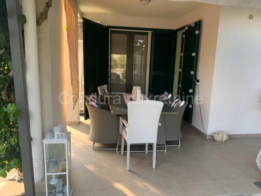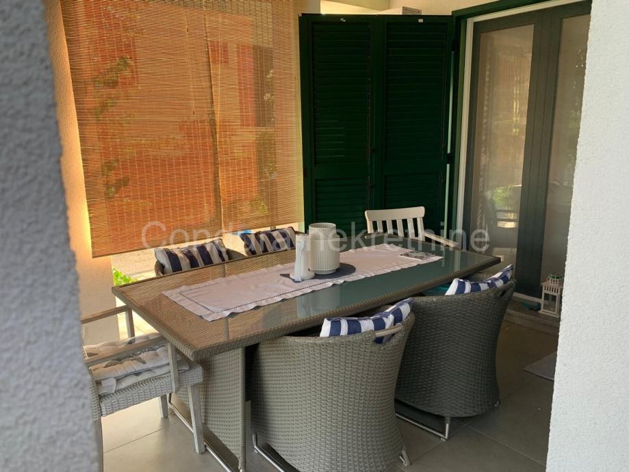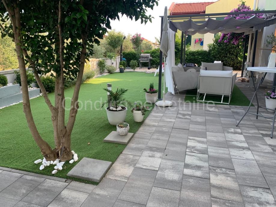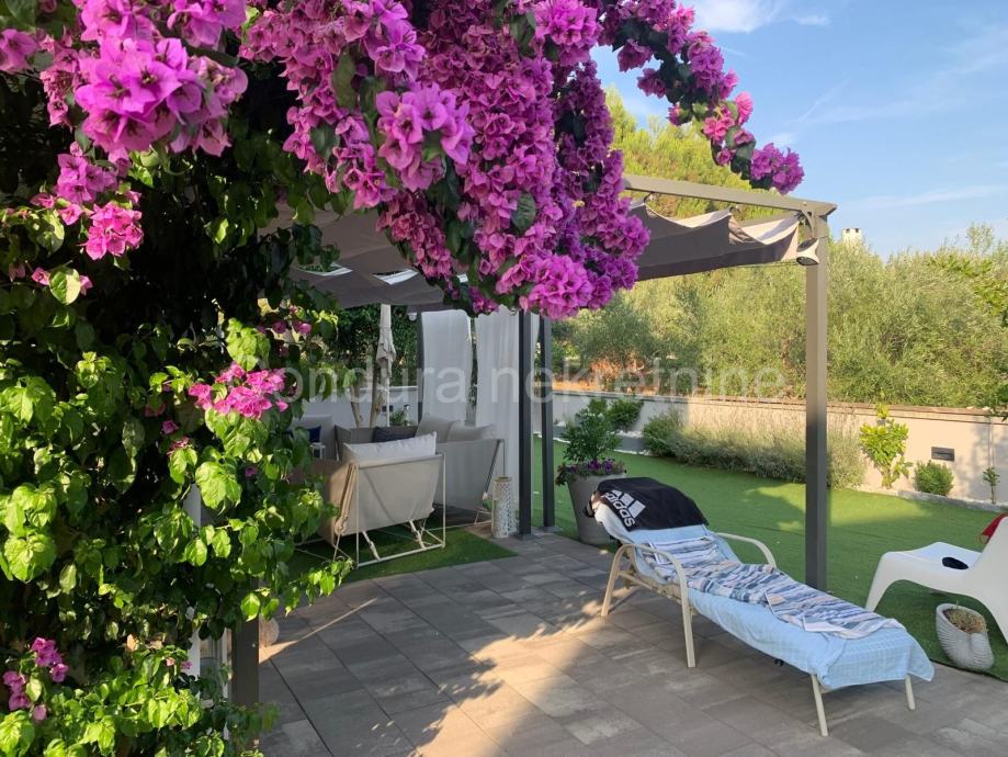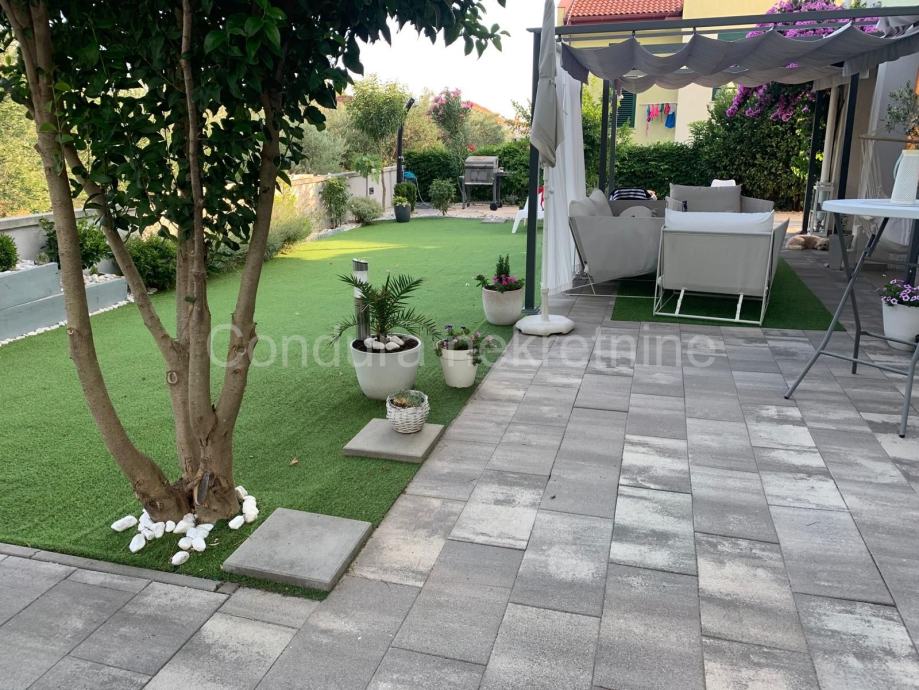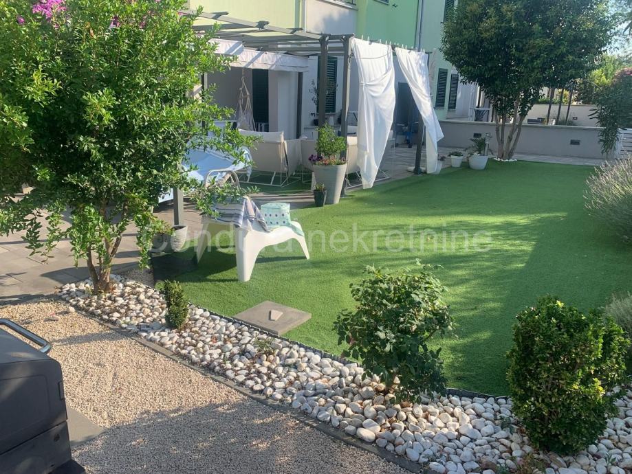 Stanu pripada prostrani vrt ukupne površine 140 m2. Vrt je lijepo uređen, djelomično popločan i djelomično prekriven umjetnom travom te zasađen raznim ukrasnim biljem. U vrtu se nalazi natkrivena pergola s vrtnim namještajem, vanjski solarni tuš te gril – savršeno mjesto za opuštanje i druženje s obitelji i prijateljima.