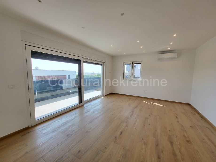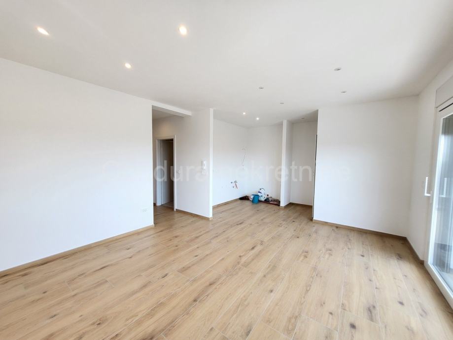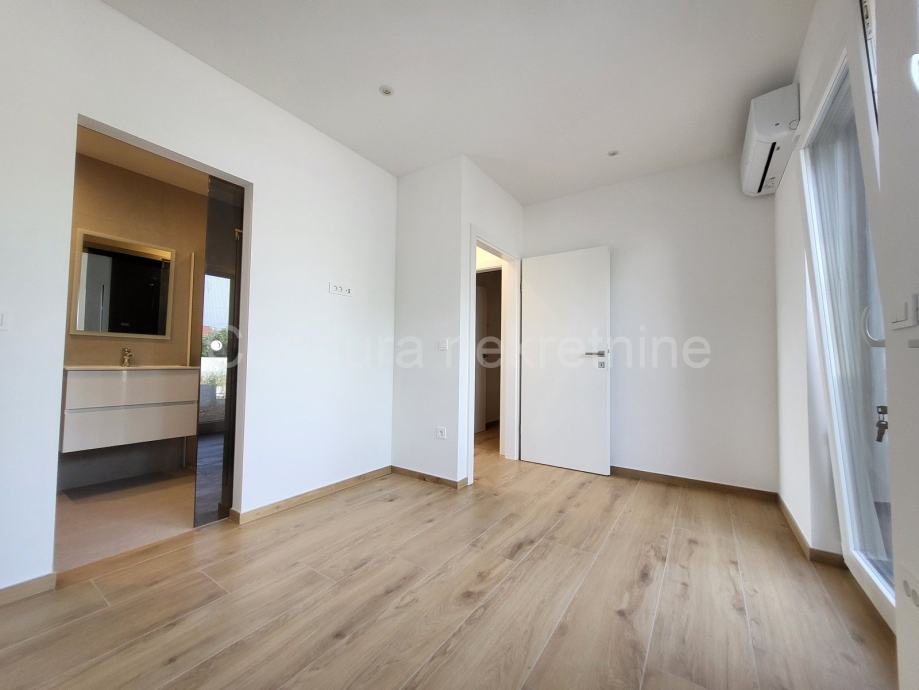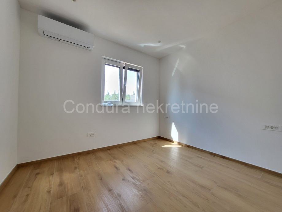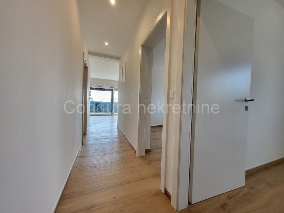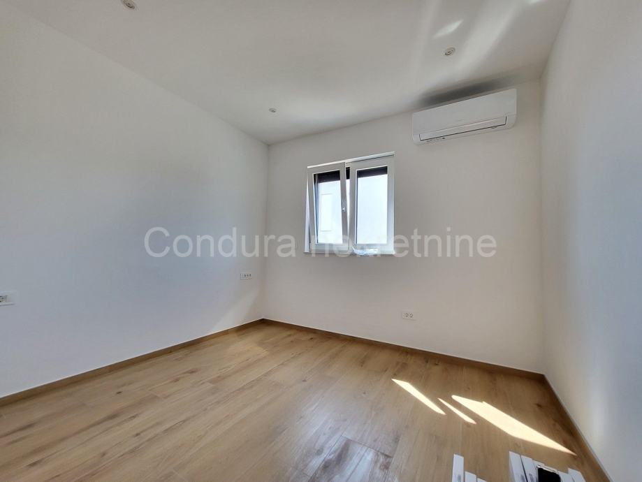 Prodaje se završen trosobni stan s vlastitim vrtom i djelomičnim pogledom na more ca. 600 m od mora i plaže.