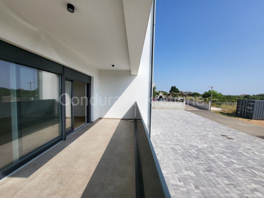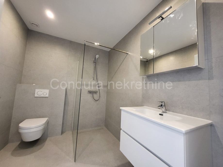 Stanu pripada terasa koja se nastavlja u prostrani vrt, sve zajedno 106,67 m2 te dva parkirna mjesta.