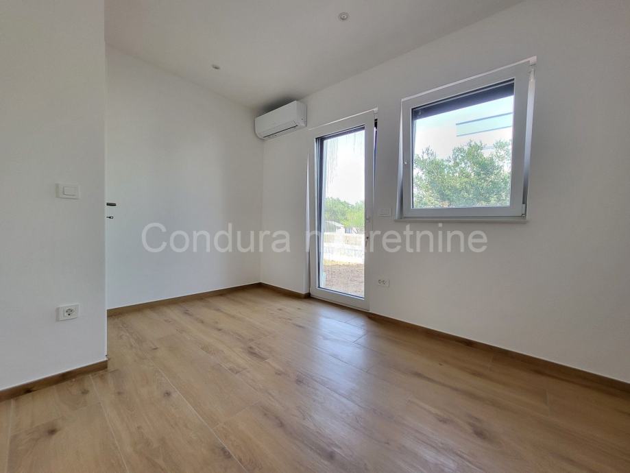 Stan se sastoji od dnevnog boravka s kuhinjom i blagovaonicom, koji zahvaljujući velikoj kliznoj stijeni obiluje dnevnim svjetlom, hodnika, kupaonice, dvije spavaće sobe te dodatne spavaće sobe s vlastitim kupaonicom i mogućnošću izlaza u vrt.