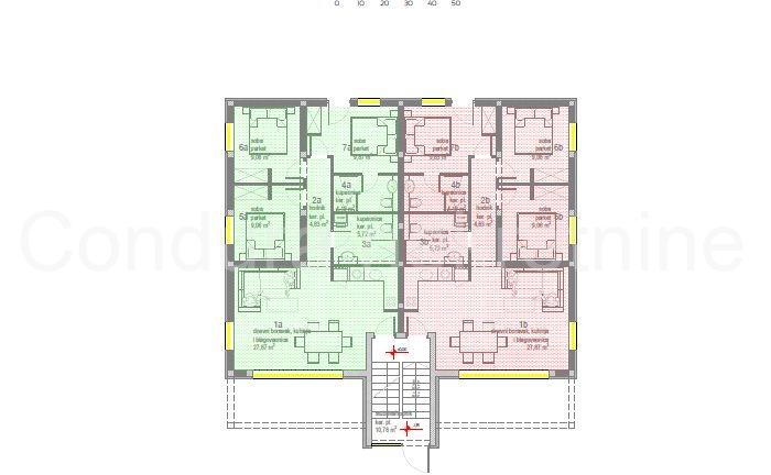 Na priloženom tlocrtu stan i pripatci označeni zelenom bojom.