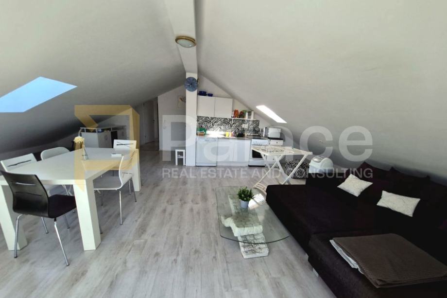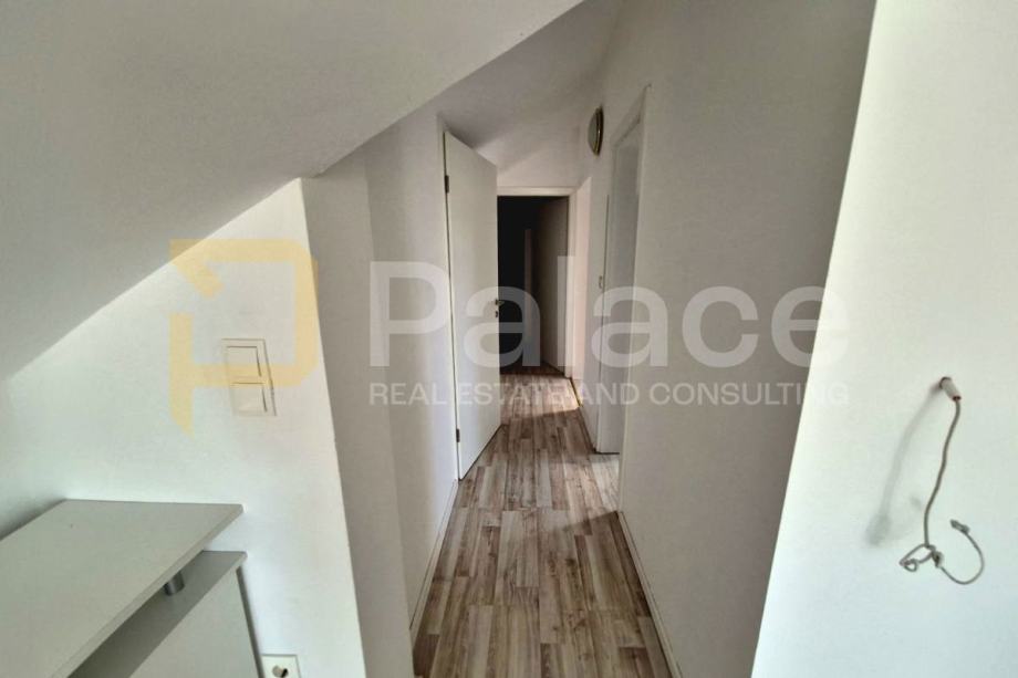 Prodaje se predivan stan u potkrovlju nedaleko od veoma raznolikih i na oko prekrasnih plaža i šetnjica u mjestu Vrsi, pogodno je mjesto i za kampiranje i uživanje u blagodatima naše prelijepe Hrvatske obale. Nekretnina je udaljena 700 metara od mora.Miran je predio, blizina infrastrukture i također je blizu Zadra, 30 minuta vožnje.Stan se sastoji od dnevnog boravka, kuhinje i tri spavaće sobe, kupaonicom i wc- om i dva balkona ukupne korisne površine 71,63 m2. Ima dva parkirna mjesta ukupne površine 6.88 m2 Pogodno je za miran obiteljski život ili za turizam.Vlasništvo je uredno 1/1.