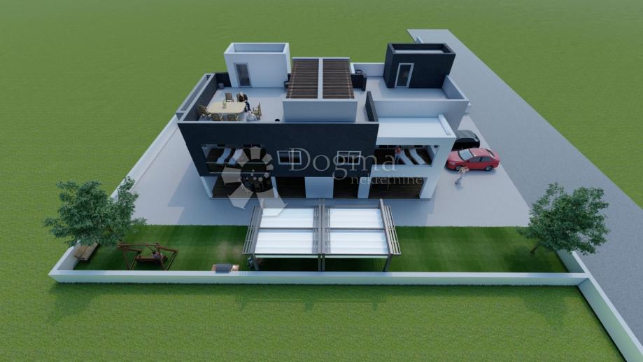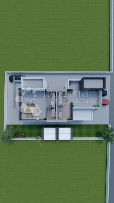 Dvorište će biti uređeno umjetnom travom i popločano kockama.