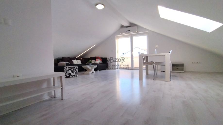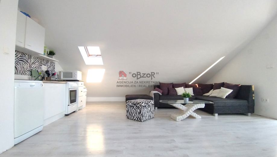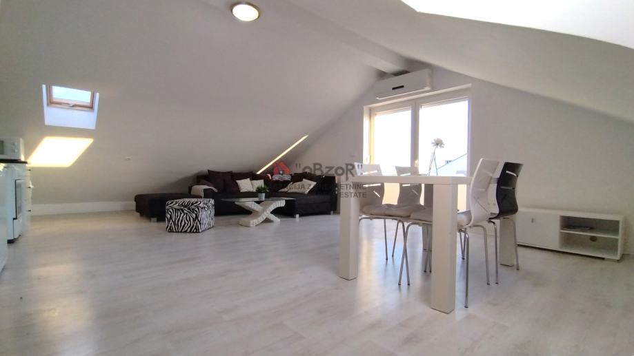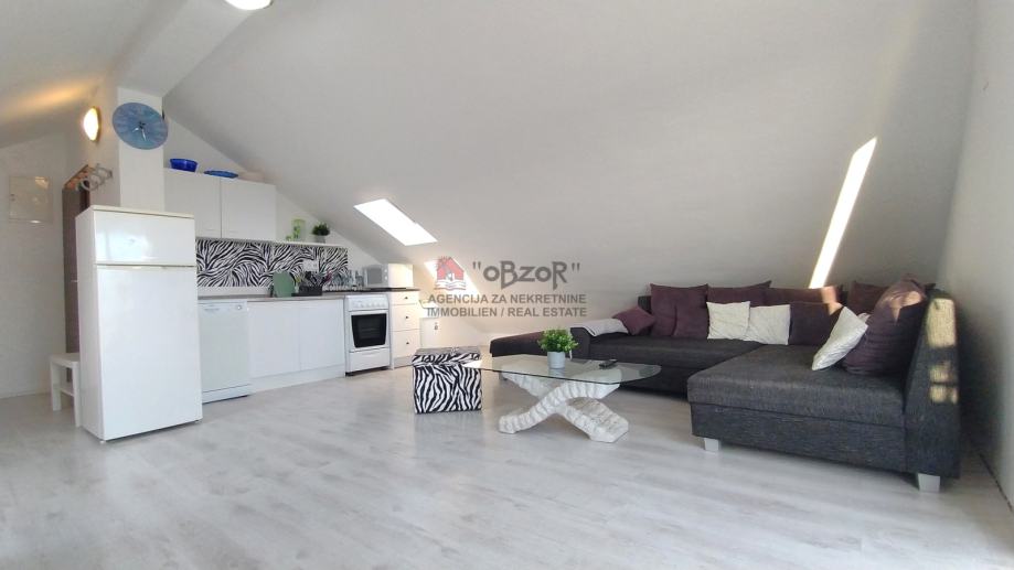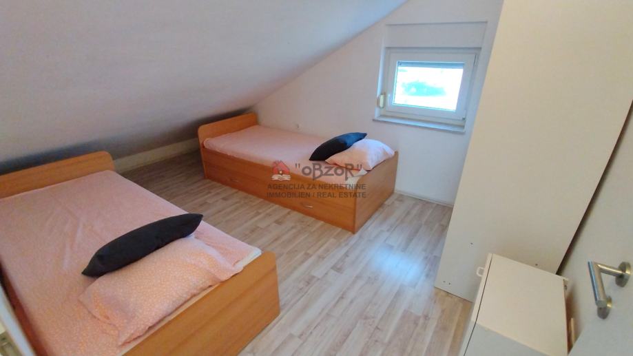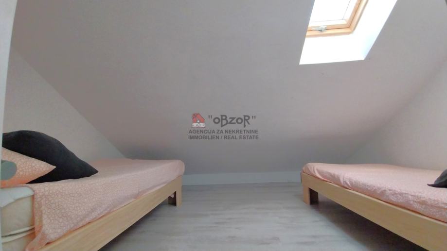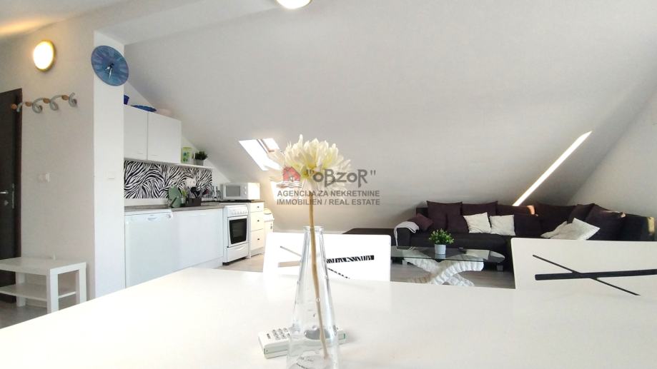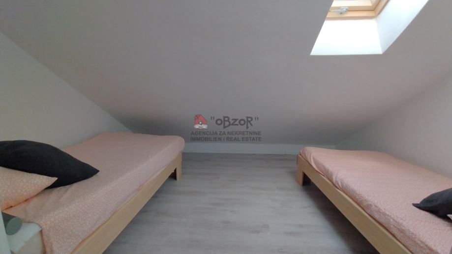 Ovaj apartman izgrađen je 2009. godine, a njegova pozicija u potkrovlju dvokatnice pruža prednost ugodnog pogleda na more i okolni krajolik. Svojim rasporedom i prostornošću apartman je prilagođen udobnom boravku, a dodatnu vrijednost daju i pripadajuća dva balkona koji omogućuju opuštanje na otvorenom.