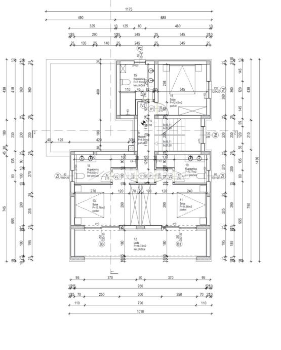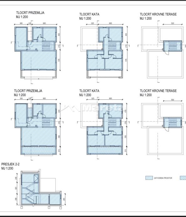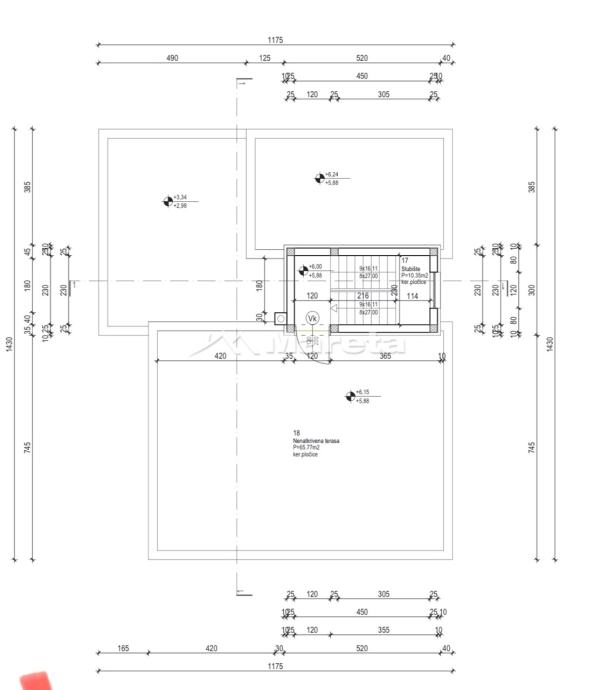 Na krovnu terasu se dolazi unutarnjim stepenicama a površina terase je 65 m2.