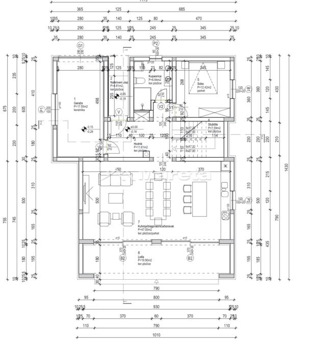 Ukupna tlortna površina prizemlja je 127,72 m2