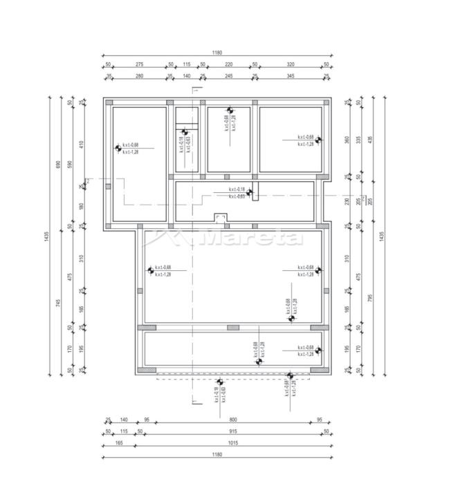 U prizemlju se nalazi natkriveni ulaz, hodnik, spavaća soba, kupaonica, kuhinja, blagavaonica, dnevni boravak i lođa.