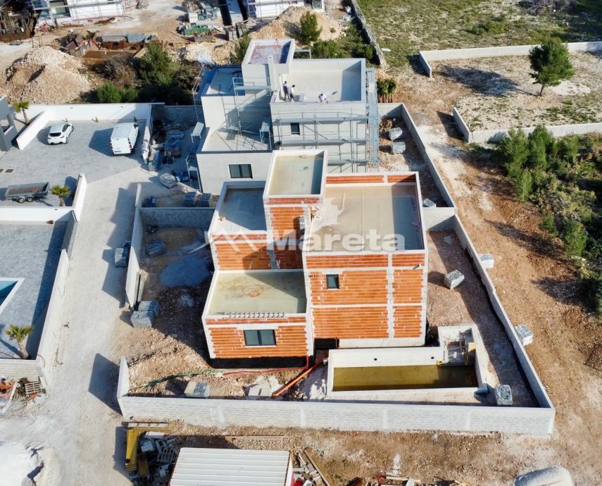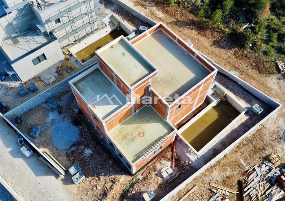 Gradnja kuće je visoko kvalitetnim materijalima, podno grijanje, fasade debljine stirpora 10 cm, vanjska dvoslojna pvc stolarija