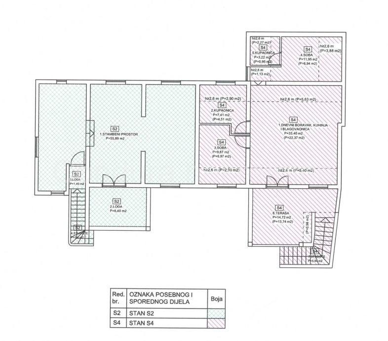 Na priloženom tlocrtu apartman je označen oznakom S4 i obojan crvenom bojom.