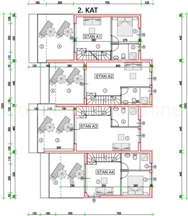 Ukupna neto površina kuće s pripadcima iznosi oko 151,21 m2, a na priloženom tlocrtu označena je kao 'STAN A4'.