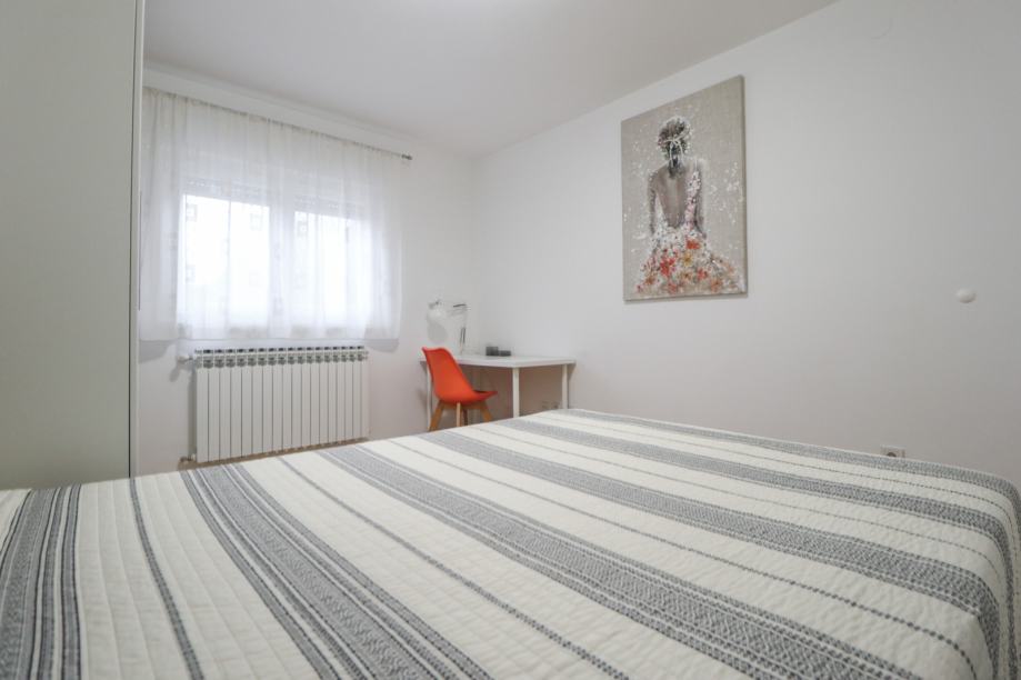 Stan je svjetao i dobrog rasporeda. Orijentiran je na sjever i jug. Površine je 65 m2, a sastoji se od hodnika, dnevnog boravka povezanog s kuhinjom i blagovaonskim dijelom, dvije prostrane spavaće sobe, kupaonice te ostave.