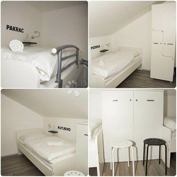 Sobe su koncipirane kao jedna dvokrevetna, šest četverokrevetnih, dvije šesterokrevetne i jedna sedmerokrevetna spavaonica.
