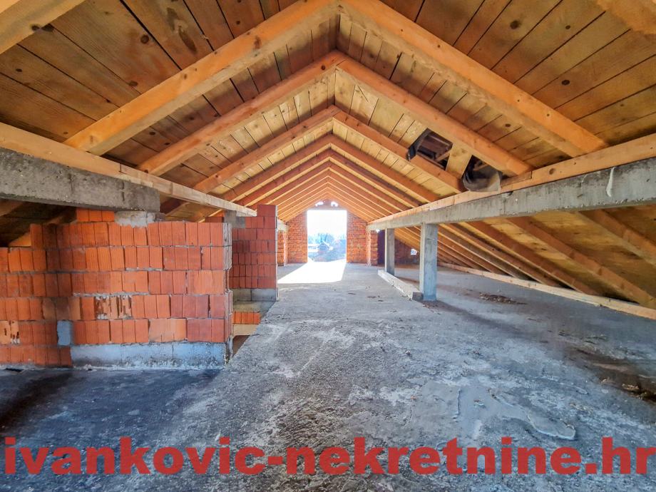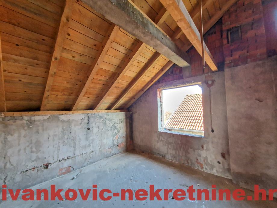 Kat i potkrovlje imaju raspored kao trosoban stan: 2 sobe + 1 velika prostorija (dnevna, kuhinja, blagovaonica) + kupaonica.