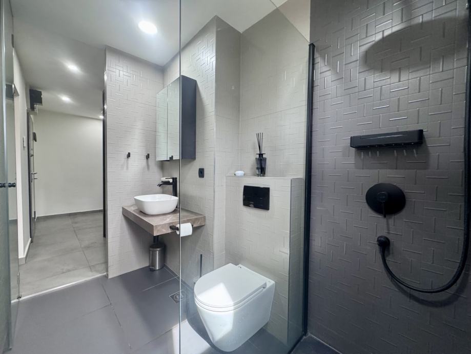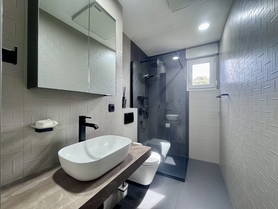 * Kupaonica: KLUDI sanitarije, Geberit vodokotlić, Zott tuš stijena, lijevani mramor