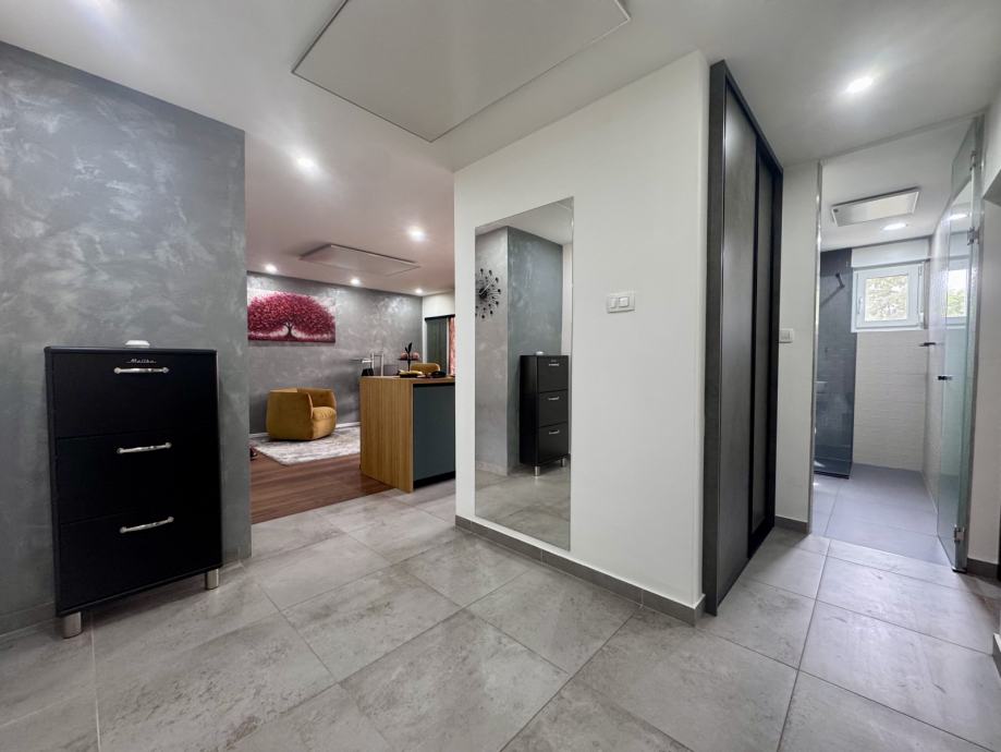 Na prodaju moderan, kompletno renoviran stan na 2. katu zgrade s liftom, ulica Slavenskog, Prečko. Stan gleda na istočnu stranu (park), a nalazi se na izuzetnoj lokaciji – sve vam je na dohvat ruke: škola, vrtić, trgovine, banka, shopping centar, javni prijevoz (tramvaj i autobus), taxi stajalište.