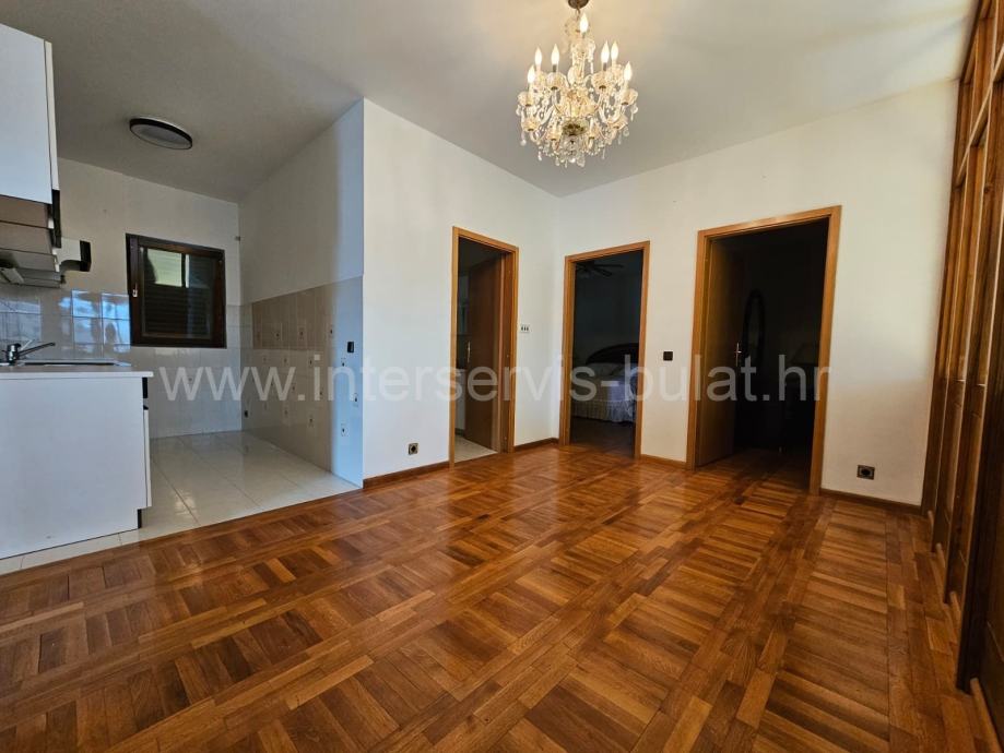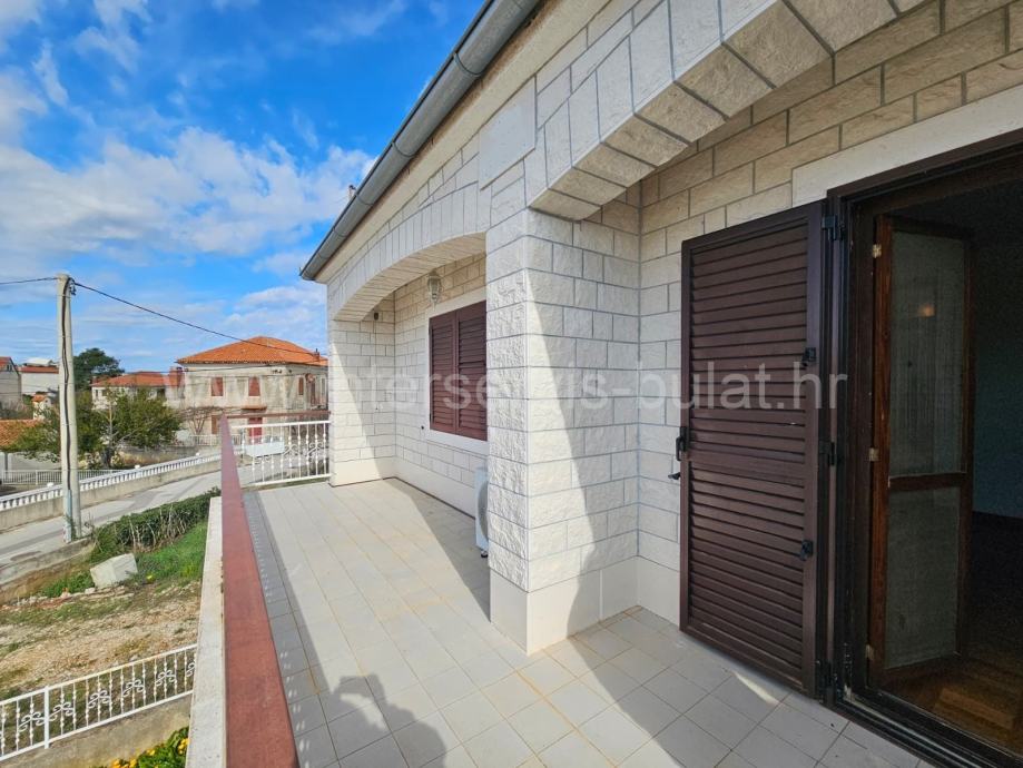 Kuća nudi 205 m2 stambene površine. U visokom prizemlju se nalazi komforan dvosobni stan od 90m2 i garaža od 13m2. Unutarnje stubište vodi na 1. kat, gdje je smješten prostran dvosobni stan od 105m2 s izlazom na balkon od 19 m2. S balkona se pruža lijepi pogled na more, koje je udaljeno svega 120 m.