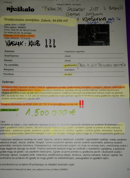 postoji realan i ozbiljan potencijal povrata u građevinsku zonu kroz planske i pravne postupke.( Zemlje je bila građevinska do 2013 ) VIDI SLIKE