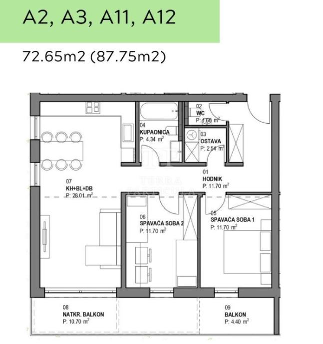 Parkirna mjesta (vanjska ili u zajedničkoj garaži) nisu obvezna za kupnju.
