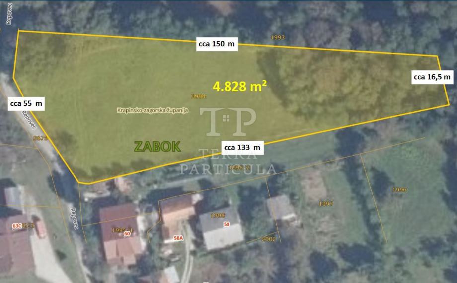 Na prodaju nudimo zemljište površine 4.828 m² od kojeg je cca polovina u zoni gradnje oznake "M", stambene gradnje. Nalazi se u neposrednoj blizini kuće na adresi: Repovec 63C, Zabok.