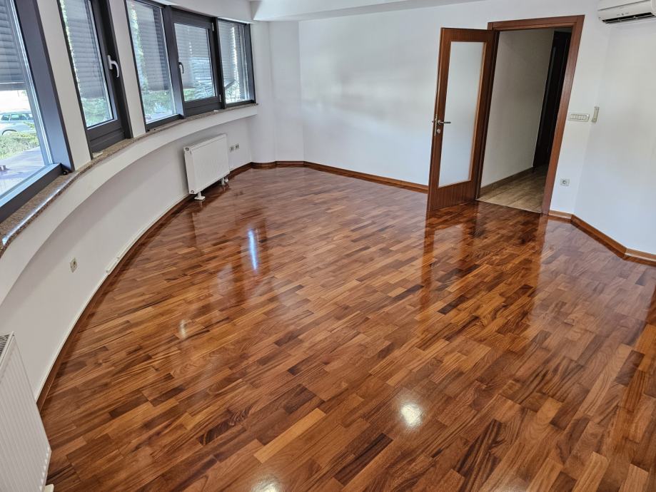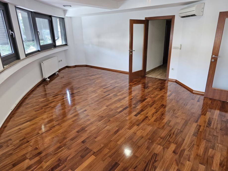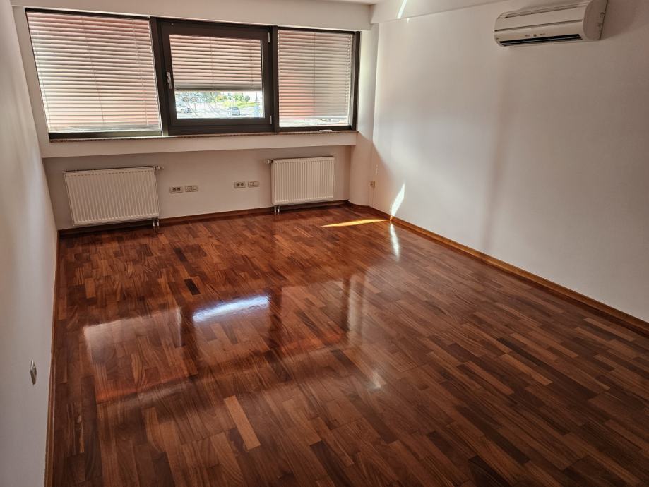 Grijanje je etažno plinsko, podne obloge su parket i pločice, prozori aluminijski, a rolete aluminijske na podizanje električnim motorima. U stanu se nalaze 4 Fujitsu inverter klima uređaja.